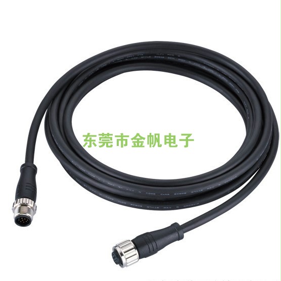 M12 4Pin A-型编码、公头+母头、成型式、屏蔽型 直头带线、PUR黑色外被